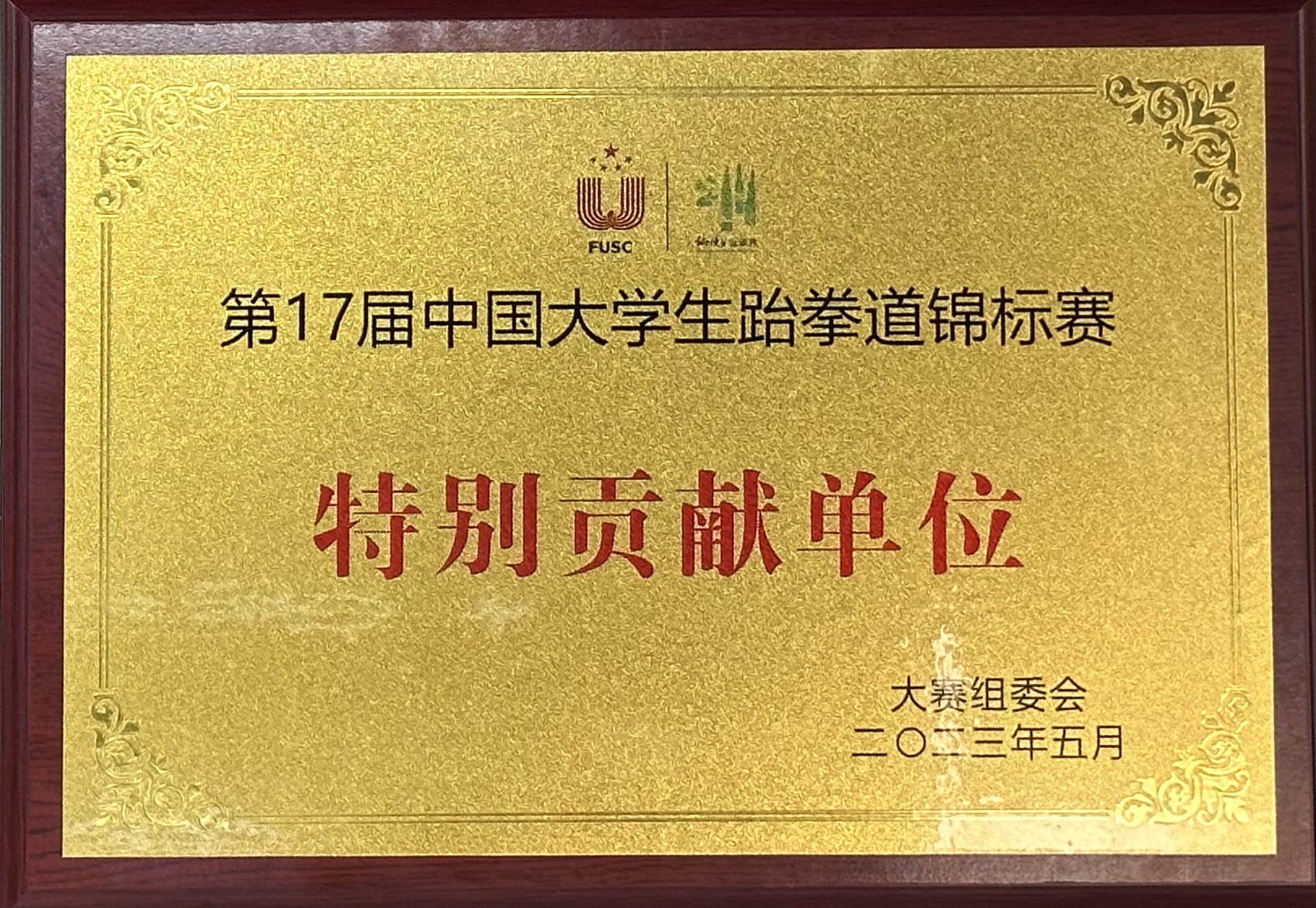 △我司被授予第17届中国大学生跆拳道锦标赛特别贡献单位